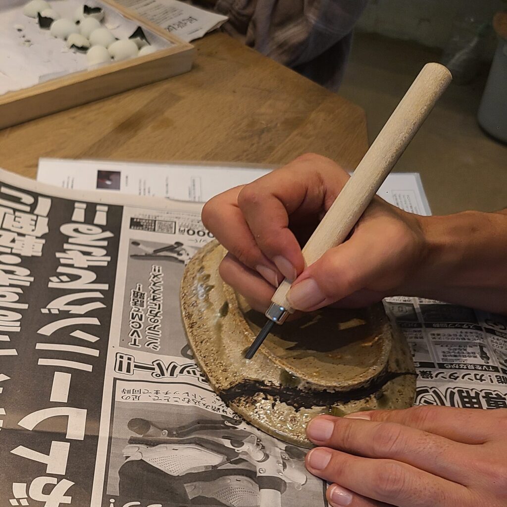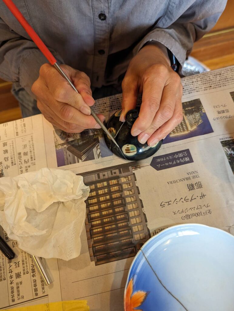 照喜名朝夫先生の厳しく、細やかな指導のもと、金継ぎ、螺鈿、蒔絵、変わり塗り、などなど、自分の好きなジャンルの漆芸に取り組んでいます。