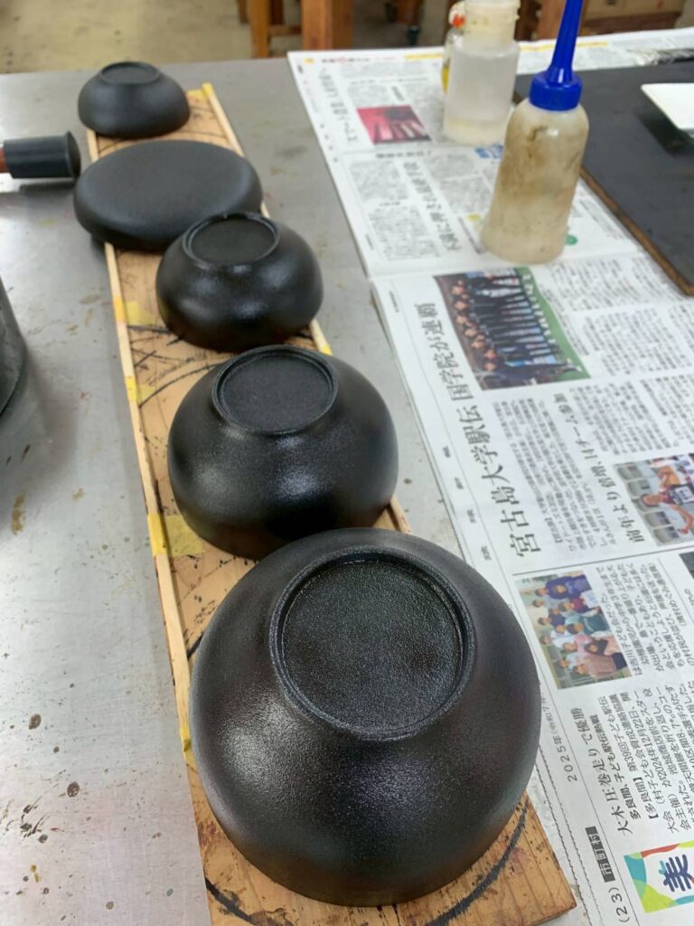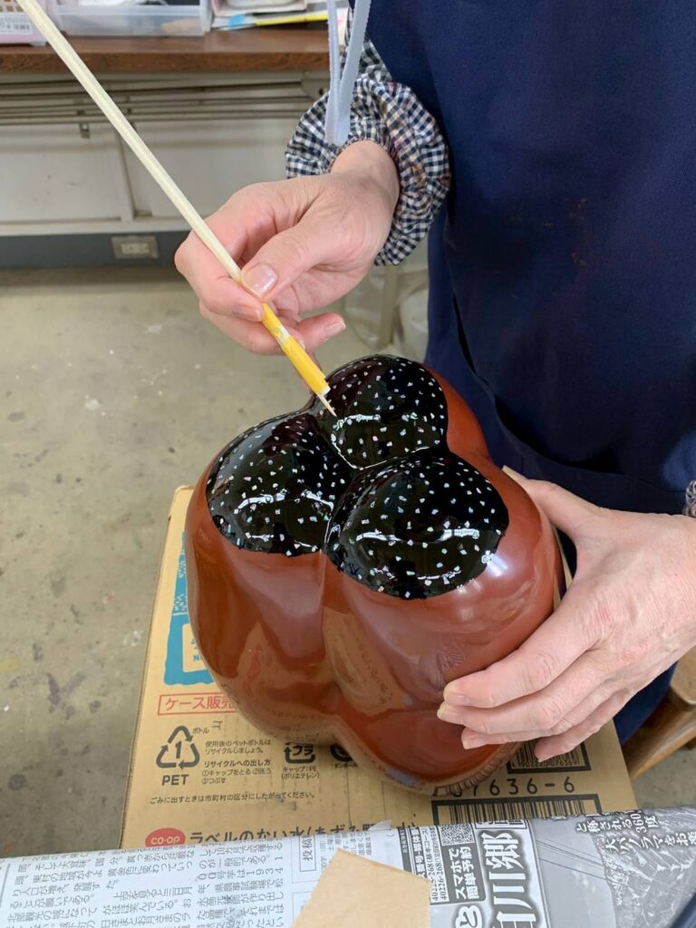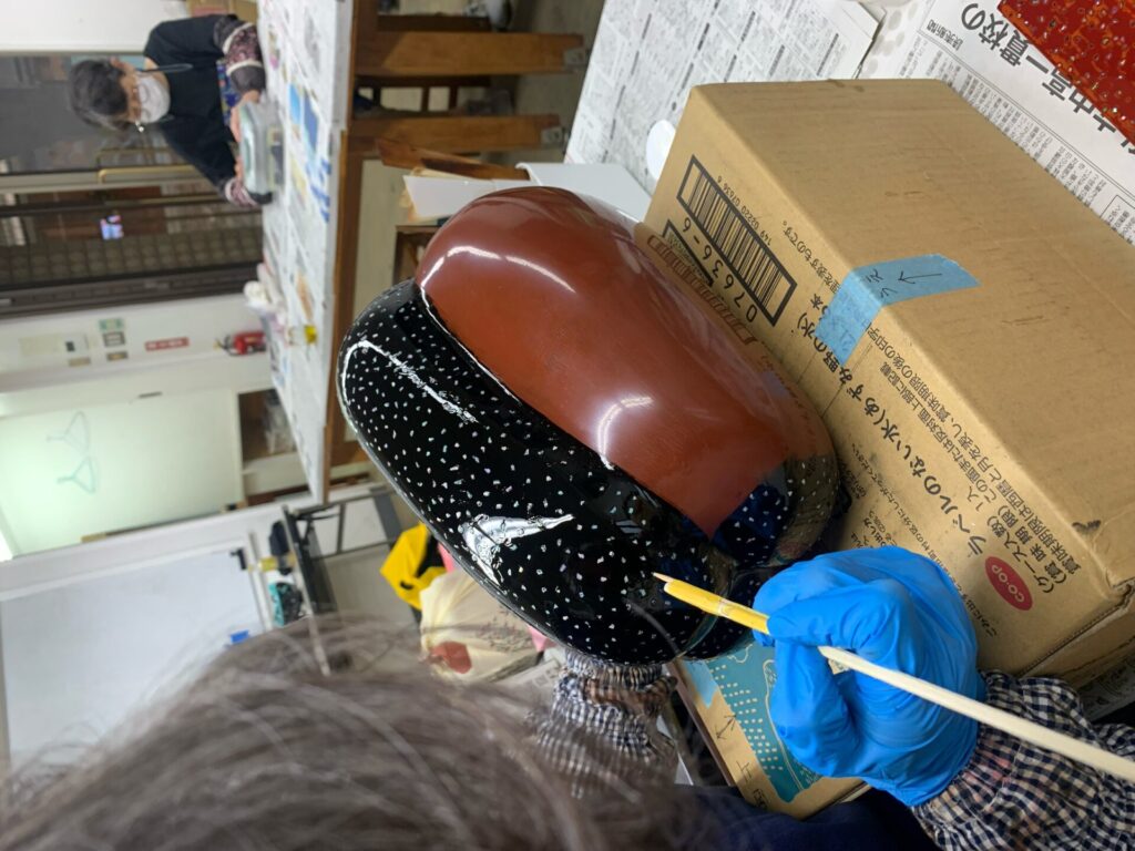 漆は、工程が細かく、作品が仕上がるまでにとても時間がかかりますが、時にはおしゃべりに花を咲かせながら、気長に楽しく作業をしています。