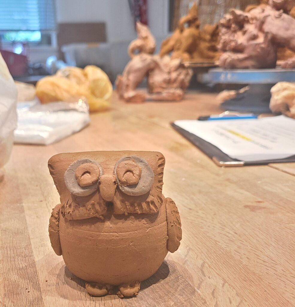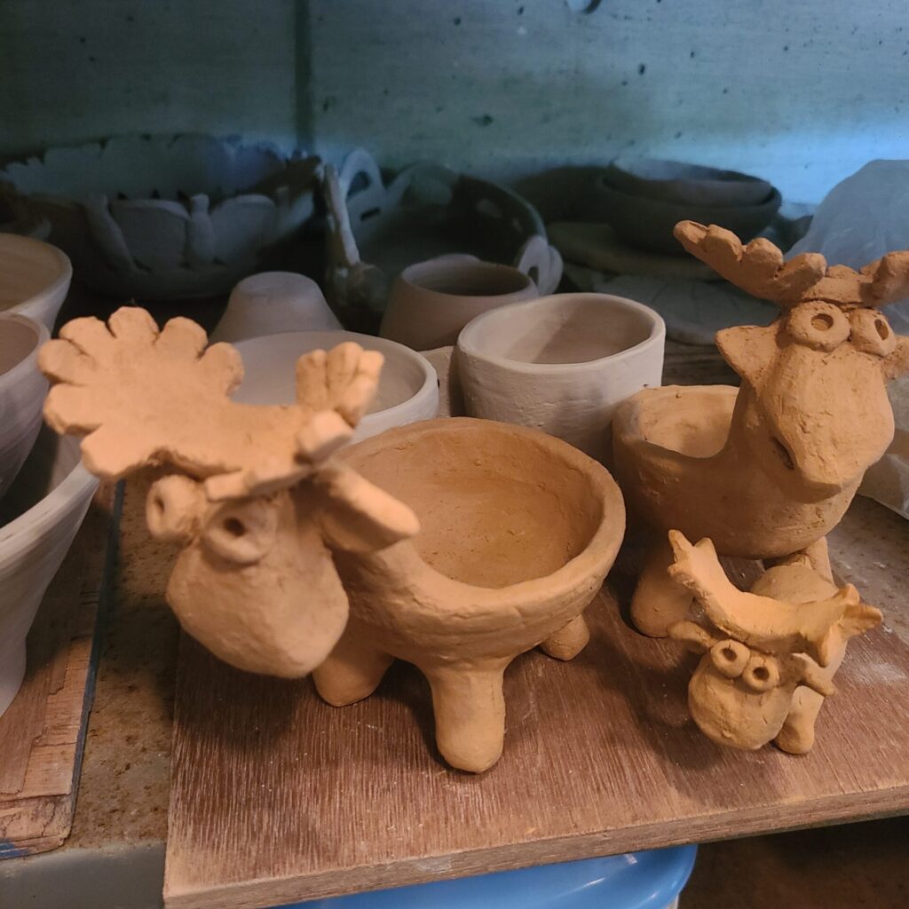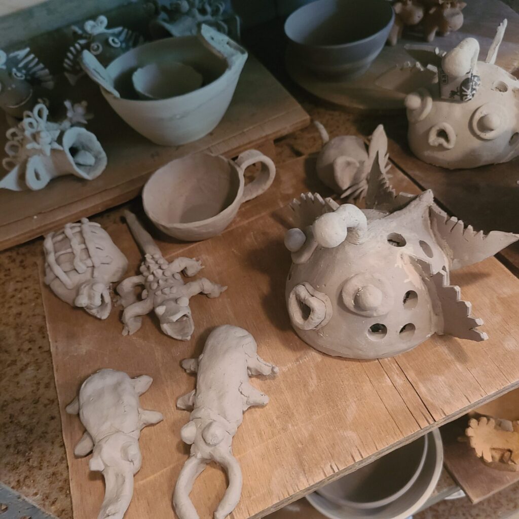 生活雑貨や、シーサー、干支づくりなど 思い思いに作陶しています。年に一度は先生をお招きして、レベルアップをめざすように予定しています。