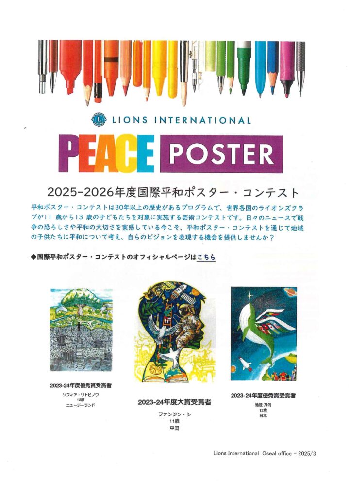 平和ポスターは世界中の子どもたちに、自らの平和へのビジョンを表現し、芸術と独創性によって世界を感動させる機会を与えます。お近くへお越しの際はぜひお立ち寄りください。